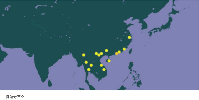 平胸龟主要生活在山润清澈的溪流中。在沼泽地、水潭、河边及田边也有出没,一般多在夜间活动,可攀附石壁或爬树,借尾部的支撑可攀登比自身长度大的墙壁、树枝。平胸龟是典型的食肉性的动物;尤喜食活饵,在野外,主要捕食蜗牛、蚯蚓、小鱼、螺类、虾类、蛙类等。分布于中国、老挝、缅甸、泰国、越南。