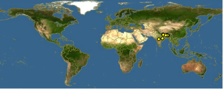 分布范围:印度犀牛在历史上曾经居住于巴基斯坦到缅甸的广大地区。分布于尼泊尔、印度、巴基斯坦、孟加拉国、不丹。