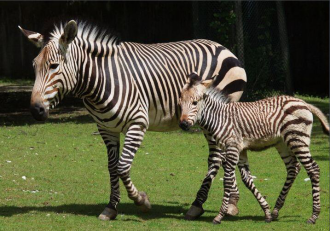 繁殖方式:山斑马全年可繁殖,各地区生育高峰存在差异。雌性孕期在1年左右,每胎产1仔。成年雌性山斑马隔年或3年繁殖一次。