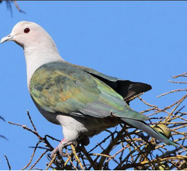 生活习性:绿皇鸠常单个或成对活动,冬天也成群活动。常在树冠层活动,特别是早晨和黄昏,常栖于大树顶端的枯枝上,一般很少下地,通常仅在需要啄食泥上和沙粒时才下地。飞行快速而有力,多在高空中,但拍翼并不频繁。叫声为“咕,咕,咕,……”,比较深沉,即使在附近鸣叫,听起来也好像是从远处传来的声音,终止前的一声比较延长,声音也很特别,很象是人类窃笑的声音。