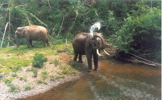 为了补充无机养分,印度象也喝含盐分的小水塘里的水、采食盐渍土。西双版纳的观察发现,成年象还采食河床水底的一种黑色小石粒,在象的粪便中也有发现。这种石粒的成分是什么,印度象为什么要采食它们,还有待进一步研究。景区中在固定地点埋放食盐能吸引野象到来。