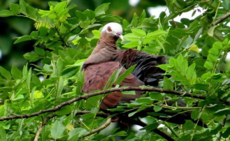 栖息环境:紫林鸽主要栖息于山地阔叶林和次生林及其林缘地带。