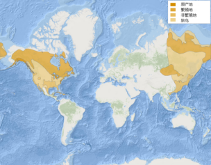 繁殖地:朝鲜、蒙古、圣皮埃尔和密克隆群岛(法属)。