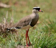 冕麦鸡(学名:Vanellus coronatus):体长30-31厘米,体重126-200克。属于中型涉禽,与鸻类相比,体型较大,很容易识别,顶冠棕色,下面是黑色和白色相交组合的环。腿较长。鼻孔线形,位于鼻沟里;鼻沟的长度超过嘴长的一半;翅形圆;有很小的后趾。两性相似,成鸟头顶及后颈黑色,黑冠由一道白色包围环。肩、背及翼覆羽青灰褐色,飞羽青灰色。眼睛在繁殖季节黄色,而在不繁殖时棕橙色,鸟喙红色具黑端。胫部裸露部分、跗蹠及趾桔红色。
