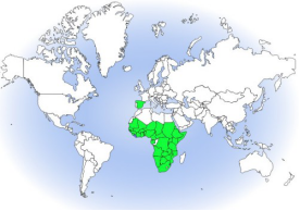分布范围:原产地:安哥拉、贝宁、博茨瓦纳、布基纳法索、布隆迪、喀麦隆、中非共和国、乍得、刚果民主共和国、科特迪瓦、厄立特里亚、埃塞俄比亚、冈比亚、加纳、几内亚、几内亚比绍、肯尼亚、马拉维、马里、毛里塔尼亚、莫桑比克、纳米比亚、尼日尔、尼日利亚、卢旺达、塞内加尔、塞拉利昂、索马里、南非、南苏丹、苏丹、斯威士兰、坦桑尼亚联合共和国、多哥、乌干达、赞比亚、津巴布韦。