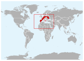 原产地:阿尔巴尼亚、安道尔、奥地利、阿塞拜疆、白俄罗斯、比利时、波斯尼亚和黑塞哥维那、保加利亚、克罗地亚、捷克共和国、丹麦、法国、德国、直布罗陀、匈牙利、伊朗伊斯兰共和国、意大利、拉脱维亚、列支敦士登、立陶宛、卢森堡、马其顿,摩尔多瓦、黑山、摩洛哥、荷兰、波兰、葡萄牙、罗马尼亚、俄罗斯联邦、塞尔维亚、斯洛伐克、斯洛文尼亚、西班牙(加那利群岛 - 漂鸟)、瑞典、瑞士、土耳其、土库曼斯坦、乌克兰、英国。