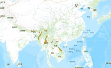 分布范围:分布于孟加拉国、不丹、中国、印度、老挝人民民主共和国、缅甸、泰国和越南。