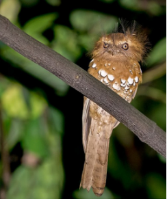 生活习性:常单独或成对活动。夜行性,白天多躲藏在密林中,沿着大的乔木树干水平枝伏卧或站于树枝上,因体色与树枝较相似,一般不注意难于发现,有时以直立的姿态,栖止在小枝上。晚上和黄昏才开始活动和捕食。飞行轻快,毫无声响。主要以昆虫为食,也吃小型鼠类。