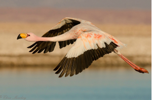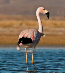 秘鲁红鹳(学名:Phoenicoparrus jamesi):又名秘鲁火烈鸟。体长90-92 厘米,体重2千克。体大而甚高,是一种体羽偏粉色的水鸟。嘴粉红而端黑,嘴形似靴,颈甚长,腿长,红色,两翼偏红。亚成鸟浅褐色,嘴灰色。
