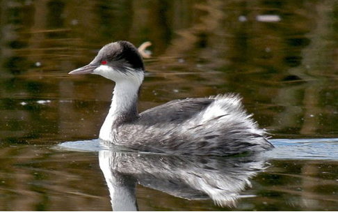形态特征:秘鲁鸊鷉体长33-38厘米。雄性和雌性具有相似的羽毛,但雄性大于雌性。繁殖羽毛中的秘鲁鸊鷉羽色是灰白色,脸颊下部、嗓子、脖子和胸部呈白色。其余的底色呈灰白色,侧面曾板岩灰色。双翅的内覆羽白色,外覆羽灰色,次级覆羽大部分是白色的。在顶冠、额头到眼睛下方为深灰色至黑色。耳罩上有拉长的羽毛,混合着一些细小的银色羽毛,形成簇羽,向后悬挂到脖子的最上侧。颈背为深灰色至黑色,在上中央狭窄延伸至后颈的其余部分,同时变宽。