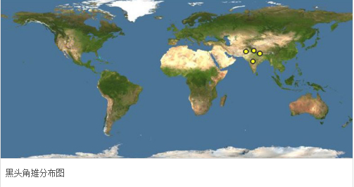 黑头角雉是角雉中数量较为稀少的一个种,仅在印度西北部、巴基斯坦西北部等地发现了一些种群,总数不足5000只。中国除在西藏西部的狮泉河流域有过早期的记录外,一直未有新的报道。在中国境内已灭绝,灭绝时间不详。