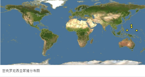 分布于帕劳、北马里亚纳群岛(美国属地)、关岛(美国属地)。