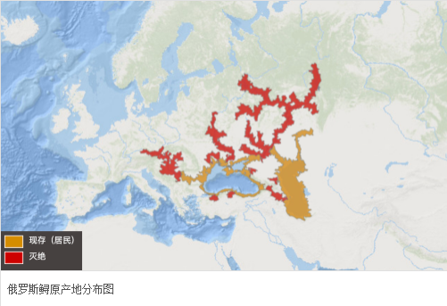存在:阿塞拜疆、保加利亚、格鲁吉亚、伊朗伊斯兰共和国、哈萨克斯坦、摩尔多瓦、罗马尼亚、俄罗斯联邦、塞尔维亚、土耳其、土库曼斯坦、乌克兰。 中国黑龙江、新疆等省有引种养殖。