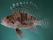 轴纹蓑鲉,Pterois radiata (Cuvier, 1829),也叫深水狮子,鲉科蓑鲉属的一种鱼类。身体由红色、白色垂直条纹构成,大的扇子形的胸鳍及羽毛状的背鳍。250升以上带藏身地点的水族箱饲养。