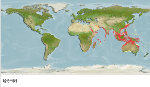 海域范围:分布于印度至西太平洋区海域,由红海及东非到菲律宾,北至日本南部与韩国,南至澳洲北部。在中国沿海均有分布。