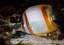 缘钻嘴鱼,Chelmon marginalis (J. Richardson, 1846),蝴蝶鱼科钻嘴鱼属的一种鱼类。本鱼和钻嘴鱼相似,吻突出,呈管状。缘钻嘴鱼黑白相间的斑纹带,黑色斑纹带总共有2条。水族箱饲养时需一段适应期,注意多次投饵。