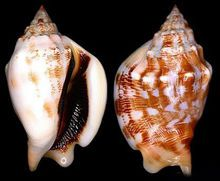 保和凤凰螺,贝壳体部通常扩张,具有突起。壳形态纺锤形,壳面富有釉质光泽,乳白色、黄色或棕色,丰富多彩。壳口狭长,具前、后水管沟,外唇宽厚,前端常有“U”字型凹槽,称为“凤凰螺缺刻”;最具特色的是有一对很发达的眼,眼柄特长,可自由伸缩,能从贝壳前沟和凤凰螺缺刻处伸出窥视外部。