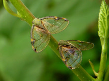 广翅蜡蝉,昆虫类节肢动物,若虫大多为白色,尾部粉絮状,善跳跃,体长1mm左右,肢节有六,身若无尾蝌蚪状,似“白裙舞者”,体积小而不易被发现。成虫头胸部黑褐色至烟褐色,足和腹部褐色,体长6.0~7.5mm。广翅蜡蝉在我国主要分布在陕西、河南、江苏、浙江、湖北、台湾、广东等地。