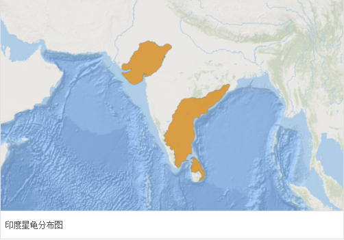 印度星龟分布于斯里兰卡、印度(泰米尔纳德邦、卡纳塔克邦、安得拉邦、奥里萨邦)和巴基斯坦。1997年中国有少量引进。