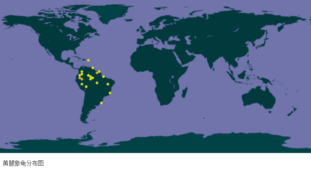 黄腿象龟栖息于南美洲各种环境中,包括雨林、热带低地和茂密的森林。有人认为它们偏爱干旱的森林地区和草原,也有人则说它们更喜欢潮湿的森林。 但是,研究表明,它们喜欢生活在草原、干燥的森林地区、热带稀树草原和雨林地带。