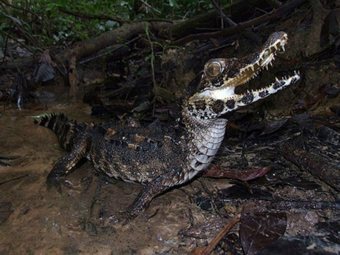 小型的鳄,体长1.4~1.7米,尾短,体型健壮而装甲厚重。 食性较广泛,既食脊椎动物,也食无脊椎动物,较大的个体比较偏好捕食斑豚鼠。
