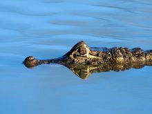 锥吻古鳄,Paleosuchus trigonatus (Schneider,1801),短吻鳄科古鳄属的一种鳄鱼。 Schneider's smooth-fronted caiman,又叫做滑额古鳄,系一种细型鳄鱼品种,长大后体型最大可到 2 米。亦是世上第二最细鳄鱼。主要分布在广布于亚马孙盆地和奥里诺科盆地,繁殖方式为 卵生,锥吻古鳄在雨季之间修筑堆起的巢,产卵10枚。与盾吻古鳄一样,锥吻古鳄的皮肤不适合利用,因而现存的数量还比较多,不属于受威胁物种。