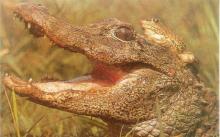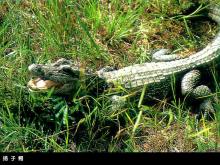 扬子鳄白天隐居在河岸两旁洞穴中,夜间出外捕食。