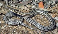 巴顿氏蛇蜥(学名:Lialis burtonis) 蜥蜴目,澳洲最大的蛇蜥,头部延长,体形似蛇,身体背面主要为浅灰色至乳白色,有暗褐色或黑色细斑纹,腹面为白色。