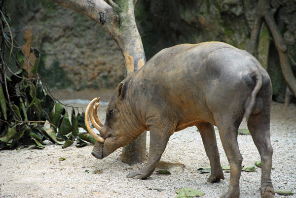 鹿豚属(学名:Babyrousa):是猪科、鹿豚亚科唯一属的3个物种。体长85-110厘米,肩高65-80厘米,尾长20-32厘米,体重约80千克,最大达100千克左右。主要特征为獠牙4枚:其中下獠牙如野猪,突出唇外,挡在眼睛前方;上獠牙从口腔中向上长,穿出上颚骨和脸部,在眼睛斜前方弯曲向后。听觉非常敏锐,嗅觉也十分发达,但它的视力很差。皮肤粗糙,经常有大的褶皱或皱纹,呈灰色、褐色至黑色,下体变浅,毛发稀疏而短,腿长、皮厚。