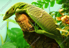 绿树巨蜥,即翡翠巨蜥又葱绿巨蜥(巨蜥科,拉丁学名:Varanus prasinus)分布于新几内亚岛及周边岛屿,栖息于热带雨林区,是一种十分华丽的中型树栖型巨蜥,通体翠绿,在巨蜥中是十分罕见的。全长90~100厘米,尾部截面呈圆形,具盘绕物体的能力,长度约与躯干长相当或更长。具长尾、发达之四肢及趾爪等特征,有助于适应树栖生活。吻部细长,圆状鼻孔位于眼睛至吻部间。