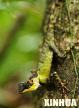 避役科Chamaeleonidae,身体侧扁,尾可扭曲成螺旋状,缠绕树枝。能根据不同的光度、温度、湿度等因素而变换体色故又名变色龙。避役科有4~6属85~158种,主要分布于非洲大陆和马达加斯加岛,向东至印度,少数分布于亚洲和欧洲南部。除了善于变换身体的颜色外,有能缠绕的尾巴,长长的有粘性的舌头。指、趾对握,以前足内侧2指为一组,其余3指为一组,以后足外侧2趾为一组,其余3趾为一组,能将树枝抓握得更加牢固。头上常生有角、嵴或结节。比如东非的杰克孙避役头上有三只角,让人联想起史前的三角龙。头部两眼突出,可分别转动,眼球上只留下一条窄缝看东西,这样的结构能使一只眼睛盯住所发现的猎物,转动头部,然后射出舌头,准确地将猎物捕获。舌很长,舌尖宽,具腺体,分泌物可粘住昆虫取食。大多适应树栖生活,也有时生活于草本植物上。只有少数种类营陆地生活。有的种类卵生,有的种类卵胎生。