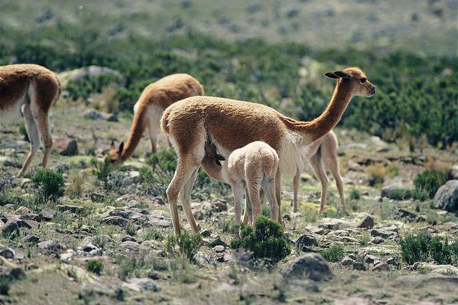 骆马是秘鲁、玻利维亚、阿根廷和智利的安第斯山区海拔3500至5750米高的半干旱草原上特有的动物,能够在空气稀薄的高山上驮运货物,它的肉可以食用,皮可以制成皮衣、皮帽,毛可以制成毛织品。