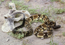 一般的蛇,其与摄食有关的各骨的联结都较灵活,尤其是下颌通过方骨间接连在颅骨上,因此,口可以张开到130度(人的口只能张开30度),加以下领的两半在颏部以韧带相连,还能左右展开。当蛇咬住食物后,长有牙齿的成对的上颌骨、腭骨、翼骨和下颌骨,都可以左右交替地将食物向后拉动,与此同时,蛇的上、下领还向前包住食物,自然不难吞下比自己头大几倍的食物了。食物一旦被蛇吞入食道,由于体壁可以高度扩张,加上体壁肌肉的依次收缩,食物很快就被送入胃内。