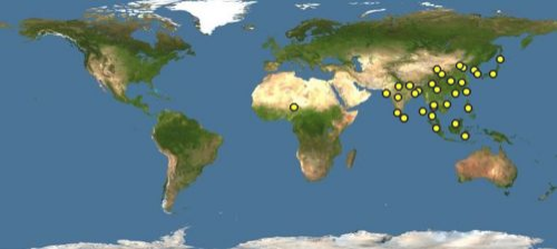 分布于孟加拉国、文莱达鲁萨兰国、柬埔寨、中国、印度、日本、朝鲜民主主义人民共和国、大韩民国、老挝人民民主共和国、马来西亚、缅甸、菲律宾、新加坡、泰国、越南。