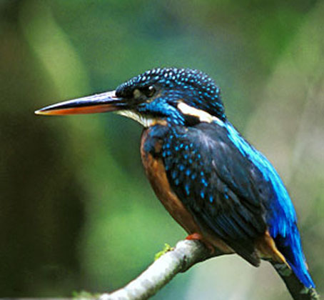 叫声似普通翠鸟叽叽作叫但声较深沉。