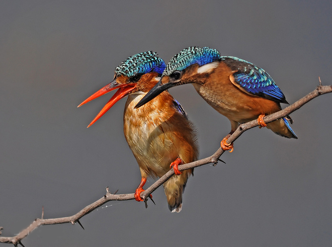 冠翠鸟(学名:Corythornis cristatus):是非洲最常见的翠鸟之一,体长13厘米,体重12-18克。 广泛分布于非洲撒哈拉沙漠以南。冠翠鸟的样子也很像是普通翠鸟,不过体形略小,嘴为红色而不是黑色,头上的羽毛可以竖起成冠状,因而得名。顶冠的羽毛呈黑色和淡蓝色或蓝绿色,杂有白点。