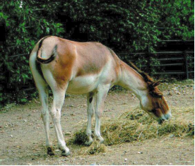 西藏野驴(学名:Equus kiang):是所有野生驴中体型最大的一种,平均肩高为140厘米。外形与蒙古野驴相似。头部较短,耳较长,能够活转动。吻端圆钝,颜色偏黑。全身被毛以红棕色为主,耳尖、背部脊线、鬃毛、尾部末端被毛颜色深,吻端上方、颈下、胸部、腹部、四肢等处被毛污白色,与躯干两侧颜色界线分明。它们外形似骡,体形和蹄子都较家驴大许多,显得特别矫健雄伟,因此在当地人们常常把它们叫做“野马”。