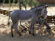 细纹斑马(Equus grevyi) 亦称狭纹斑马、格氏斑马。为现存体型最大的野生马类,肩高可达145-155厘米。分布于索马里、埃塞俄比亚南部至肯尼亚北部。最大识别特征是条纹较其它斑马为细密。分布于索马里、埃塞俄比亚南部至肯尼亚北部。1882年由非洲的阿比西尼亚皇帝赠送给法国总统格雷维一匹之后,才被人们所认识,所以便被叫做格氏斑马。现处于濒危状态。 |