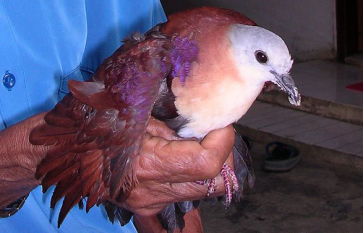 外形特征:外形类似于鸽子,头白色,身子红色