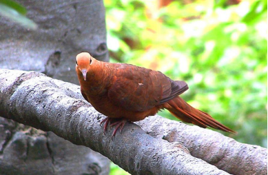 外形特征:是小鹃鸠的亚种之一,体长32厘米。头顶和头侧为棕栗色,背上部及两肩呈棕色,并缀有黑褐色的细横斑纹。嘴爪平直或稍弯曲,嘴基部柔软,被以蜡膜,嘴端膨大而具角质;颈和脚均较短,胫全被羽。