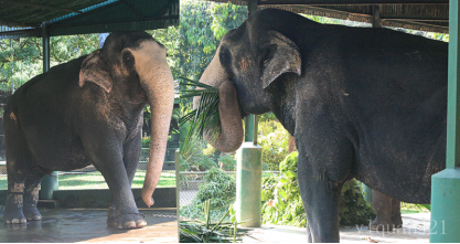 生活习性:锡兰象是食草动物,它主要食草,叶,树皮,掉落在地上的果实、棕榈叶(如椰树树叶)。长大后每日需要吃大约 200 公斤食物。
