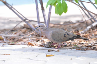 外形特征:斑颊哀鸽体型中等,较小的个体身长31 cm,平均重量为110~170g。翅膀为宽阔的椭圆形,头部较圆,长尾巴尖端为锥形。斑颊哀鸽每只脚有4根脚趾,3根向前,1根向后,腿较短,为淡红色。喙为暗色,通常为黑褐色,较短。