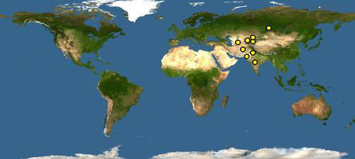 分布范围:分布于阿富汗、中国、印度、伊朗伊斯兰共和国、哈萨克斯坦、巴基斯坦、塔吉克斯坦、土库曼斯坦、乌兹别克斯坦。