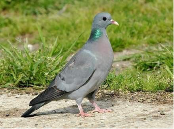 欧鸽(学名:Columba oenas):体长31厘米,体型略小于普通家鸽。羽色为深灰色,翅膀上有两条不明显的黑色横线。眼睛呈黑色。虹膜红褐色或淡黄色,嘴基部红色,嘴端渐变为黄色,脚粉红色。雌鸟嘴脚较暗。雌鸟和雄鸟相似,但羽色较暗。