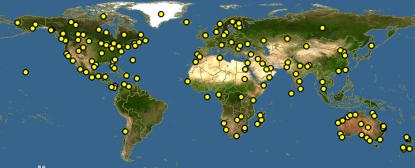 分布于阿富汗、阿尔巴尼亚、阿尔及利亚、安哥拉、澳大利亚、奥地利、阿鲁巴、阿塞拜疆、巴哈马、巴巴多斯、巴林、孟加拉国、白俄罗斯、伯利兹、博内尔岛、圣尤斯特歇斯岛、萨巴、博茨瓦纳、文莱达鲁萨兰国、保加利亚、柬埔寨、布基纳法索、喀麦隆、加拿大、开曼群岛、中非共和国、中国、哥伦比亚、乍得、科摩罗、刚果、哥斯达黎加、科特迪瓦、古巴、库拉索岛、塞浦路斯、捷克共和国、吉布提、多米尼加共和国、埃及、萨尔瓦多、赤道几内亚、厄立特里亚、爱沙尼亚、埃塞俄比亚、芬兰、法国、法属圭亚那、加蓬、冈比亚、德国、加纳、希腊、危地马拉、几内亚、几内亚比绍、海地、洪都拉斯、香港匈牙利、印度、印度尼西亚、伊朗伊斯兰共和国、伊拉克、以色列、日本、意大利、牙买加、约旦、哈萨克斯坦、肯尼亚、科威特、老挝人民民主共和国、拉脱维亚、立陶宛、利比亚、利比亚、马其顿、马达加斯加、马来西亚、马尔代夫、马里、毛里塔尼亚、马约特岛、麦芽、墨西哥、摩尔多瓦、蒙古、摩洛哥、莫桑比克、缅甸、纳米比亚、尼泊尔、荷兰、新西兰、尼加拉瓜、尼日尔、尼日利亚、阿曼、巴基斯坦、巴勒斯坦领土(占领)、巴拿马、菲律宾、波兰、葡萄牙、波多黎各、卡塔尔、罗马尼亚、圣彼埃尔和密克隆岛、沙乌地阿拉伯、塞内加尔、塞舌尔、新加坡、塞拉利昂、圣马丁、南非、斯洛伐克、索马里、苏丹南部、西班牙、斯里兰卡、苏丹、瑞典、瑞士、阿拉伯叙利亚共和国、台湾省、坦桑尼亚联合共和国、泰国、多哥、特立尼达和东帝汶、多巴哥、突尼斯、土耳其、特克斯和凯科斯群岛、土库曼斯坦、乌干达、乌克兰、阿拉伯联合酋长国、美国、乌兹别克斯坦、委内瑞拉玻利瓦尔共和国、越南、也门、赞比亚、津巴布韦。