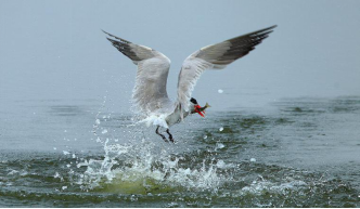 生活习性:常单独或成小群活动。频繁的在水面低空飞翔。飞行敏捷而有力,两翅煽动缓慢而轻。当发现水中食物时,常嘴朝下的在上空盘旋,然后突然冲下,扎入水中和潜入水下捕食。在水面游泳也很好。如有危险时,则成群在天空上盘旋飞翔,并发出高声鸣叫。