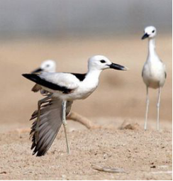 鴴形目(Charadriiformes)鴴科(Dromadidae),学名为Dromas ardeola,海滨鸟类,与鴴及其他海滨鸟类近缘。腿长,体羽黑白两色,产于印度洋。性温和,鸣声嘈杂,体长约40公分(16吋)。结群于海滨和礁石上,用厚实的喙捣碎软体动物和蟹。在陆地上呈背部隆起的姿势,飞行轻快。在沙岸上挖掘约1.5公尺(5呎)深的洞,在里面产一个大型白色的卵。