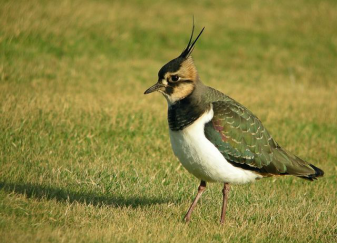 凤头麦鸡(学名:Vanellus vanellus):中型涉禽,体长29-34厘米。头顶具细长而稍向前弯的黑色冠羽,像突出于头顶的角,甚为醒目。鼻孔线形,位于鼻沟里。鼻沟的长度超过嘴长的一半。翅形圆。跗蹠修长,胫下部亦裸出。中趾最长,趾间具蹼或不具蹼,后趾形小或退化。翅形尖长,第1枚初级飞羽退化,形狭窄,甚短小;第2枚初级飞羽较第3枚长或者等长。三级飞羽特长。尾形短圆,尾羽12枚。