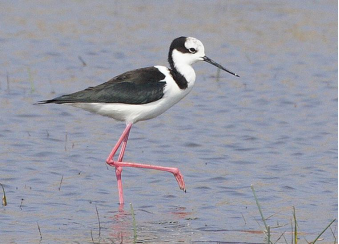 黑翅长脚鹬(学名:Himantopus himantopus),是反嘴鹬科长脚鹬属的一种鸟类,共有4个亚种。是一种修长的黑白色涉禽。体长约37厘米。特征为细长的嘴黑色,两翼黑,长长的腿红色,体羽白。颈背具黑色斑块。幼鸟褐色较浓,头顶及颈背沾灰。栖息于开阔平原草地中的湖泊、浅水塘和沼泽地带。非繁殖期也出现于河流浅滩、水稻田、鱼塘和海岸附近之淡水或盐水水塘和沼泽地带。常单独、成对或成小群在浅水中或沼泽地上活动,主要以软体动物、虾、甲壳类、环节动物、昆虫、昆虫幼虫,以及小鱼和蝌蚪等动物性食物为食。繁殖期为5-7月,每窝产卵4枚。繁殖于欧洲东南部、塔吉克斯坦和中亚国家,越冬于非洲和东南亚,偶尔到日本。