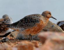 在秋季和春季,该物种的成年鸟很可能会迁徙途径中国如东(Menxiu等,2012;Clark等,2014)。它是该物种唯一已知的换羽场所(Bai et al.2015)。2011年10月在中国如东县的示例达到103只,2012年10月达到106只,2013年10月达到140只(Zöckler和Li 2013),2014年9月至少226只,2014年10月达到177-190只(Zöckler等人,2015年)可能占全球示例的很大一部分(M. Tong in litt.2011)。2014年10月,中国东台市条子泥最多记录100只鸟(Zöckler)等。2015年10月,在条子泥有超过100只的鸟类(Li和Chowdhury 2016)。2015年5月对中国如东泥滩进行的一项调查记录了至少62只,其中包括一些头发起飞的鸟类(Phillips 2015)。模拟工作表明中国如东太远不能让物种从其繁殖地单程飞行到达,并且正在开展工作以确定俄罗斯远东地区的另一个中途停留地点(Clark等人,2014年)。中国沿海水鸟调查于2005年至2013年间进行(Bai et al.2015)确定了以下对该物种具有国际重要性的遗址:辽宁(鸭绿江河口湿地)、江苏(如东沿海、东台沿海、东陵沿岸)、福建(闽江口国家级自然保护区、大墩岛屿和威头湾)和广东(溪头海岸)。